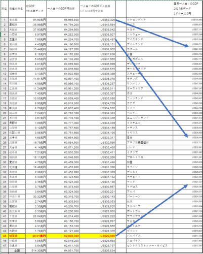 翔んで埼玉が話題です。 www.tondesaitama.com 私も今年で埼玉県民30年です。 26歳から住んでいます。 その埼玉ですが、以下の図をご覧下さい。 日本の都道府県別一人当りのGDPです。 なんと、下から3位です。 ドル換算で、他国の平均とも比較しました。 ス…
